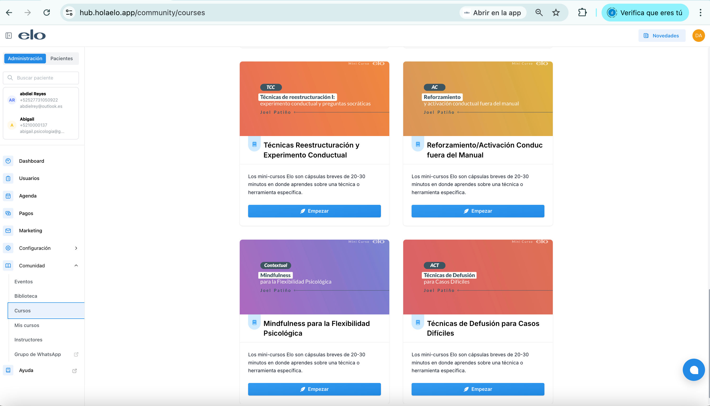 Lanzamos los mini cursos de 20 minutos de “Regulación Emocional en tiempo real (DBT)” y el de “Microintervenciones para el cambio conductual (FAP)”. El objetivo es darles herramientas practicas en sesiones cortas que tengan un impacto en su consulta diaria.