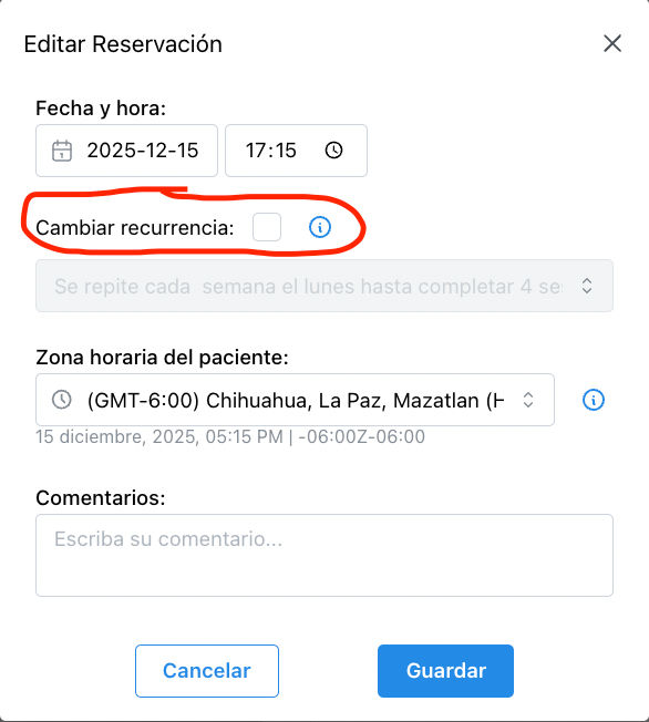 1. Agenda - Modificar Frecuencia y Tipo de Sesión 📅