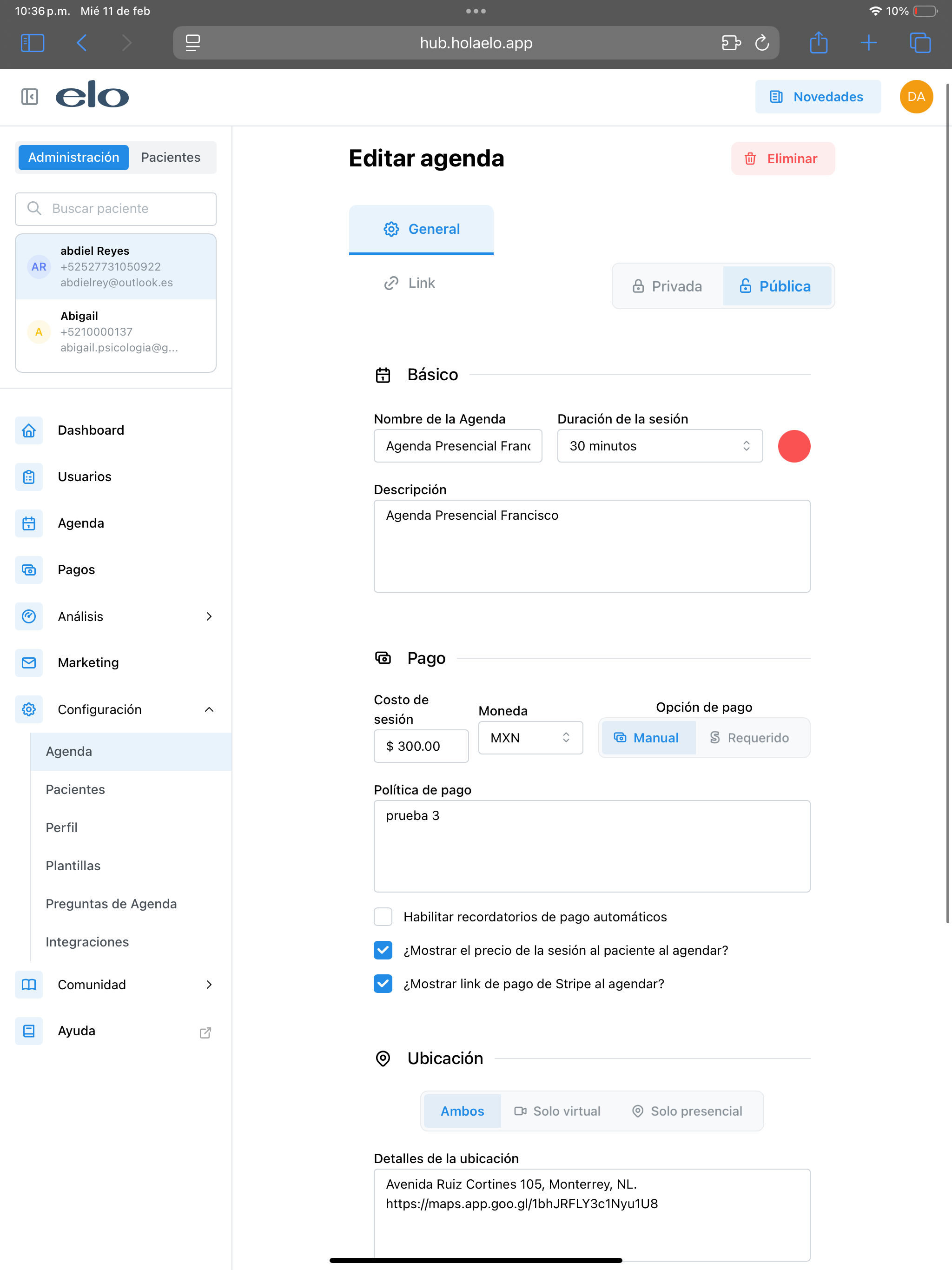*2. CONTACTO SECUNDARIO:* Ya puedes agregar en la información de contacto de tus pacientes un segundo número de contacto, aparece como "contacto secundario"